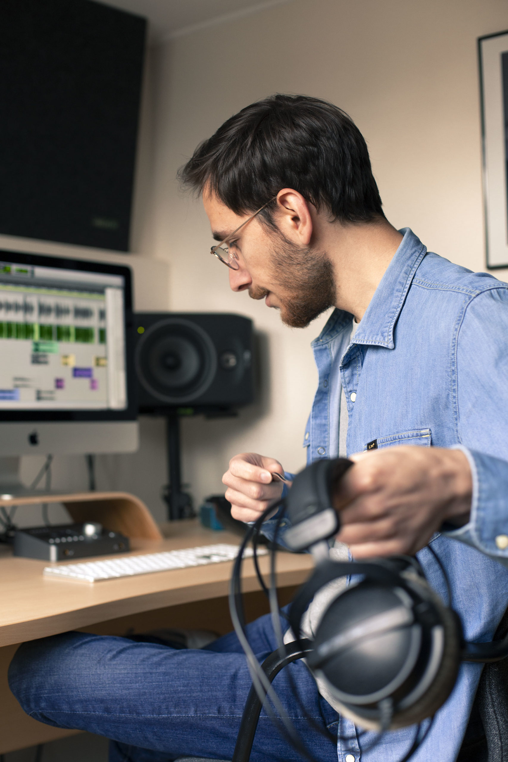 J’enregistre tout depuis mon home studio et t’envoie les fichiers en ligne. Mais je peux aussi me déplacer et travailler avec toi en live.